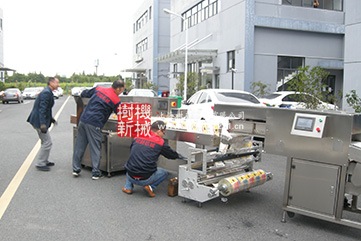 2017年10月20日,我公司生產(chǎn)的一套河粉包裝設(shè)備終于順利裝車(chē)發(fā)貨了。本套設(shè)備在SMZH-950枕式包裝機(jī)的基礎(chǔ)上定制了一套自動(dòng)進(jìn)料裝置,實(shí)現(xiàn)了河粉自動(dòng)下料,自動(dòng)檢測(cè),重量測(cè)量,自動(dòng)切包等。