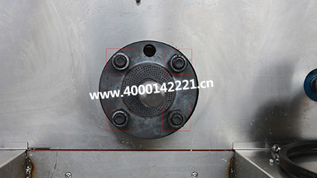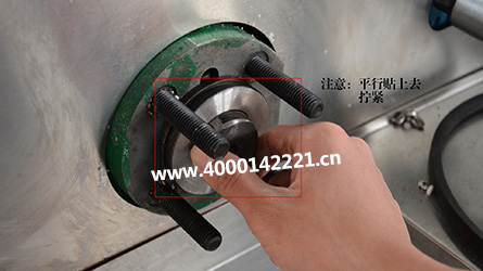 10.機頭四顆螺絲的安裝; 四個螺絲的安裝順序需要對角緊,切忌一顆緊死,這樣會導致機頭貼合不緊而導致膨化出來的米花有長條;此時,需要把機頭的螺絲鎖到不能再擰為止,越緊越好,這樣膨化出來的米花大小才均勻。
