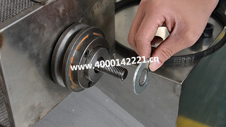 物料膨化度的調節(jié);還有一個要點,非常重要,兩個小螺絲的松緊度要剛剛好,不能太緊,也不可過松。詳細請參考操作視頻12分50秒,先擰里面的螺絲,外面的螺絲鎖緊。如果滑輪太重,則需要把里面的螺絲向外擰一點,再鎖緊外面螺絲。我們總結出來的經驗,如果滑輪能夠轉上半圈,力度則剛剛好。具體松緊度需要靠自己多調節(jié),即可熟能生巧!