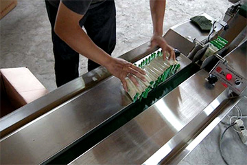 - 本次案例展現(xiàn)的是條狀物體的包裝——巧克力的包裝。我們的裝機(jī)人員調(diào)試好相關(guān)參數(shù)后,巧克力便在流水線動(dòng)起來了,包裝速度達(dá)到了1個(gè)/2秒的效率。...