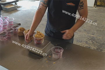 在視頻例三中,工人對(duì)原料進(jìn)行稱重到567克(這個(gè)重量應(yīng)該是包含了塑料盒的重量)。