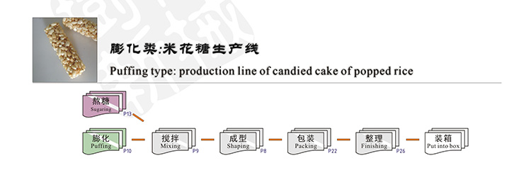 | 米花糖生產(chǎn)線(模壓式設(shè)備,可生產(chǎn)各種圓形、桃心形、半圓形、圓柱形等) |