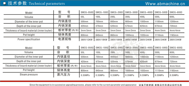 SMCG夾層鍋(也叫熬糖鍋)分電加熱夾層鍋和蒸汽加熱夾層鍋兩種,電加熱夾層鍋采用380V的電源,功率根據(jù)鍋的大小匹配,由于功率較大,工廠布線時,注意使用較粗的電線,如有疑問,可咨詢我們的工程師 (客服電話:40001-42221)。蒸汽加熱夾層鍋,需要您原來有鍋爐,把蒸汽引到夾層鍋?zhàn)鳛闊嵩淳涂梢粤恕?/span>