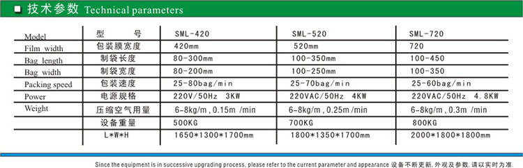 SML-420/520/720 立式包裝機(jī)(翻領(lǐng)提結(jié)構(gòu)適合大重量大尺寸的粉末,顆粒的包裝) |